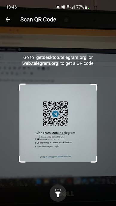Quét mã QR Telegram khi đăng nhập bằng điện thoại