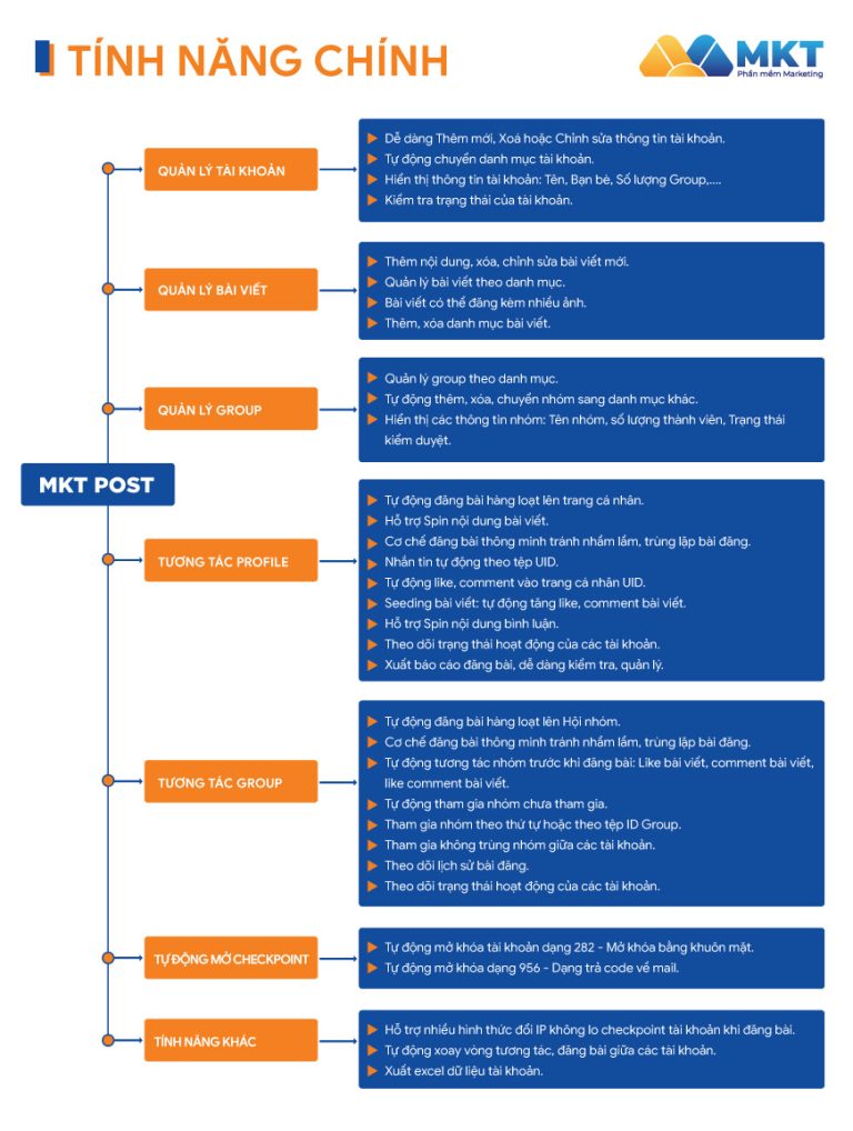 I. Các tính năng chính của phần mềm đăng bài quảng cáo Facebook – MKT POST.