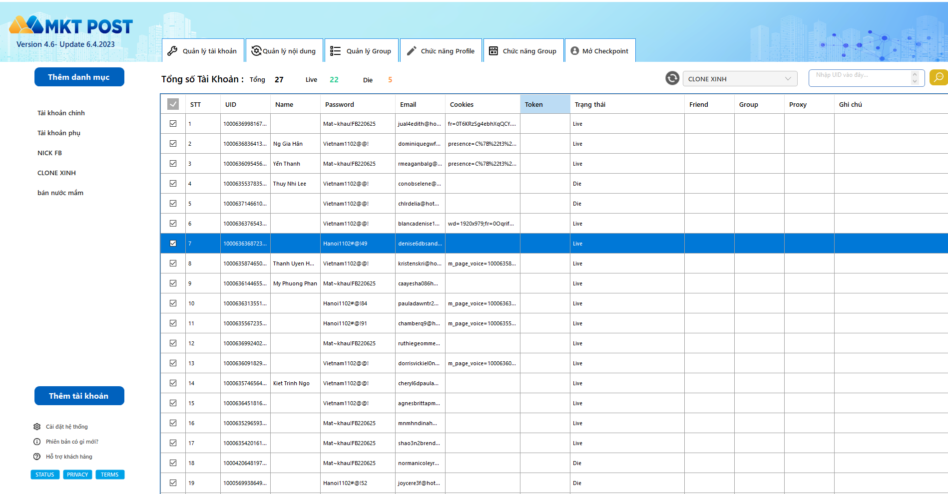 - Kiểm tra tình trạng các tài khoản live, die tự động