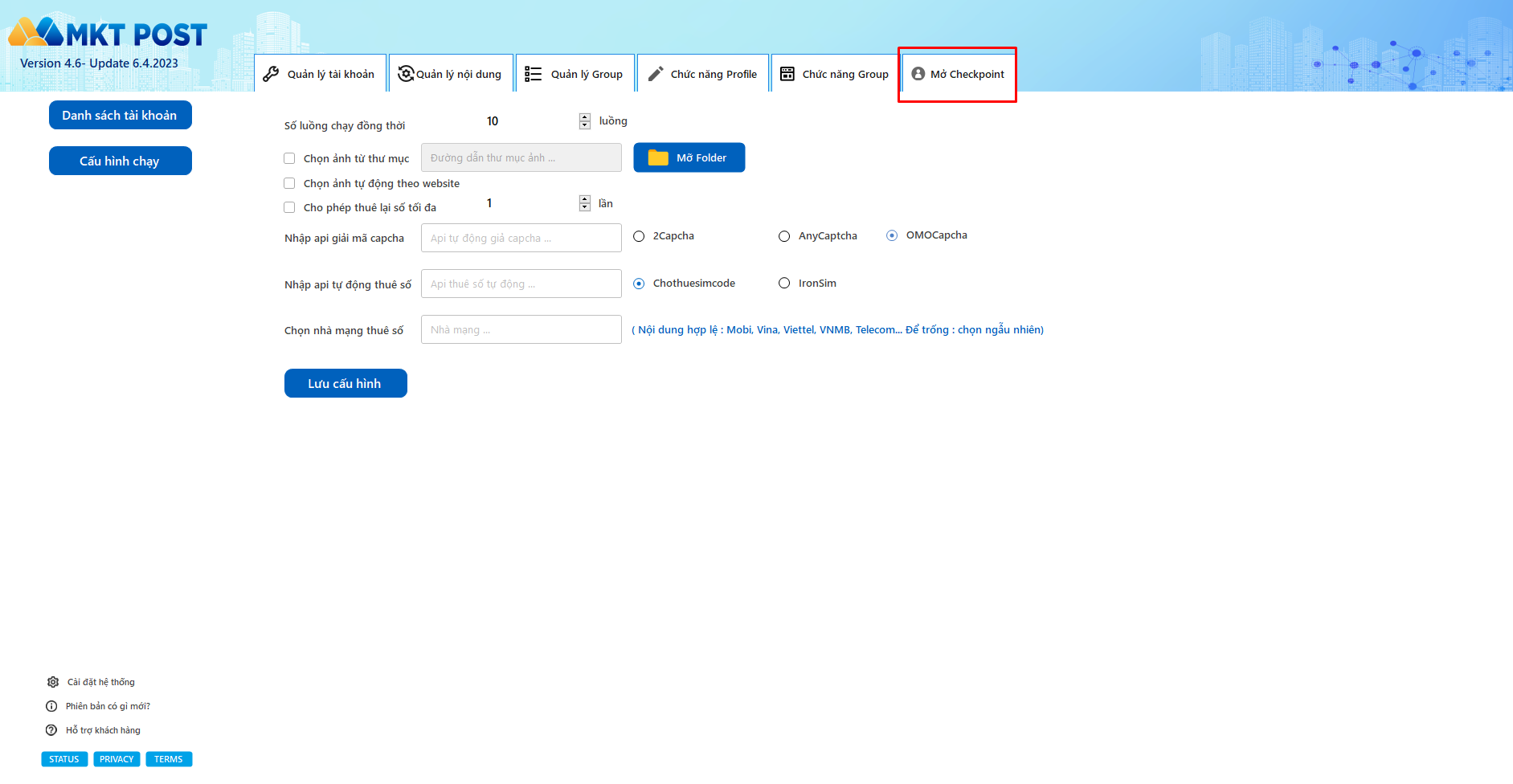 5. Phần mềm MKT POST với tính năng mở khóa Checkpoin nick Facebook siêu việt.