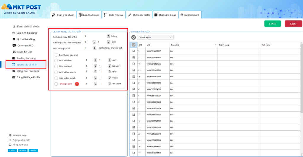 4. Phần mềm MKT POST tự động tương tác tài khoản như người dùng thật.