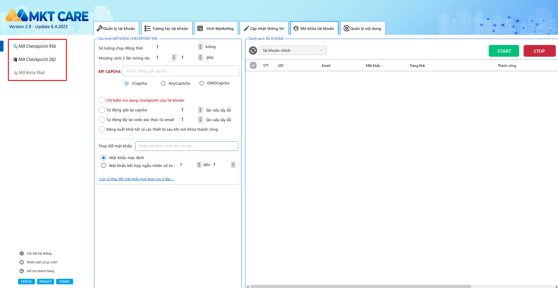 5. MKT Care giúp bạn mở Checkpoin tự động hàng nghìn tài khoản Facebook.