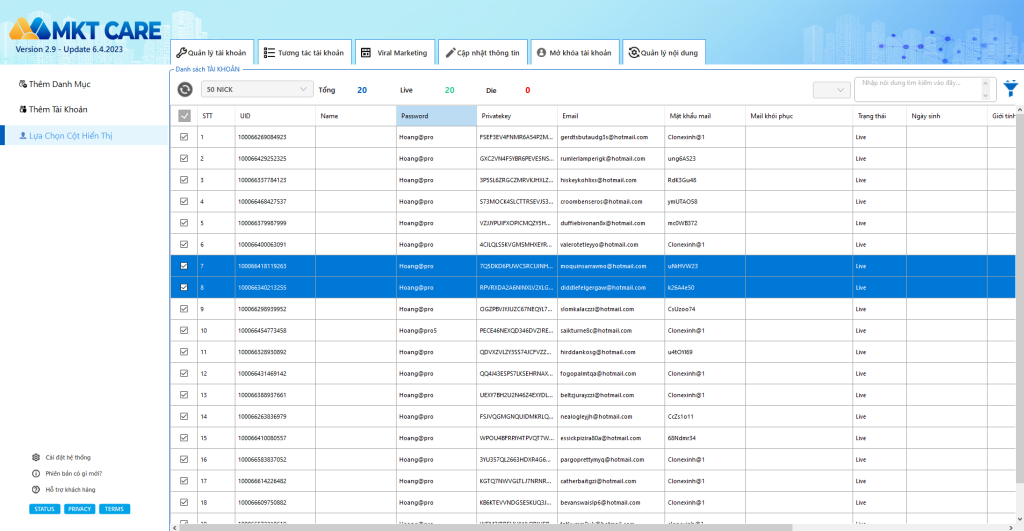 1. Tool nuôi nick Facebook, chia sẻ livestream – MKT Care hỗ trợ quản lý tài khoản Facebook số lượng lớn.